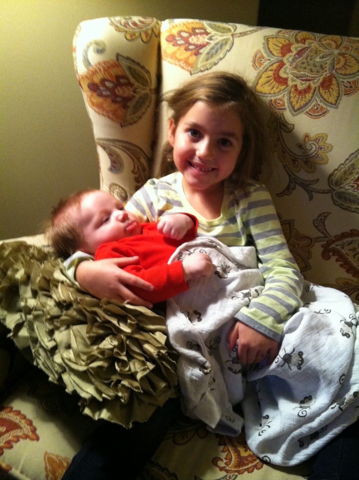 After two months, June finally wanted to hold Owen and she pulled through. Usually she gets a little scared of him on her lap, but this time she was fine with it. I love being a mom of two.